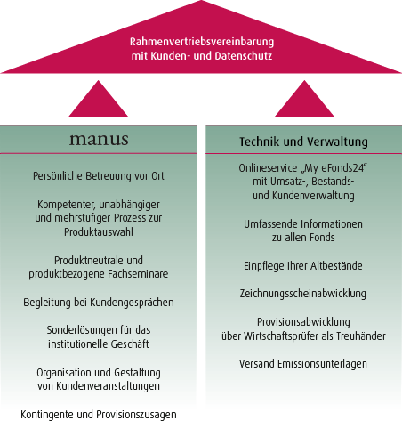 Das Service- und Dienstleistungsangebot der manus Consulting GmbH für Banken und Sparkassen unterstützt professionell wichtige Geschäftsprozesse für den gesamten Bereich der Alternativen Investmentfonds (AIF).